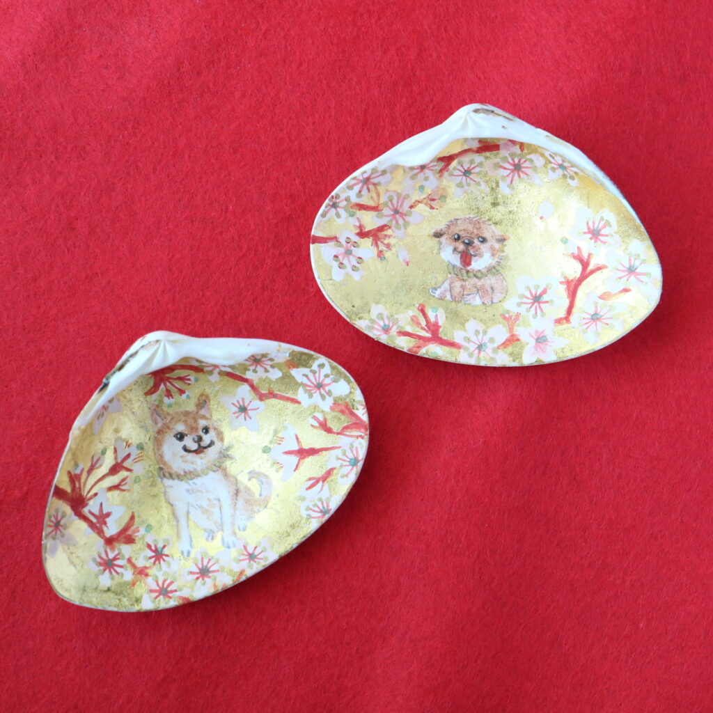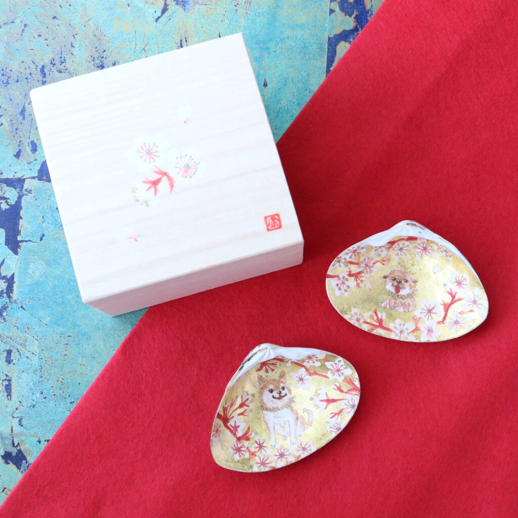 貝合わせ お守り柴・桜 20,000円(税込)貝のサイズ約7cm・桐箱つきです