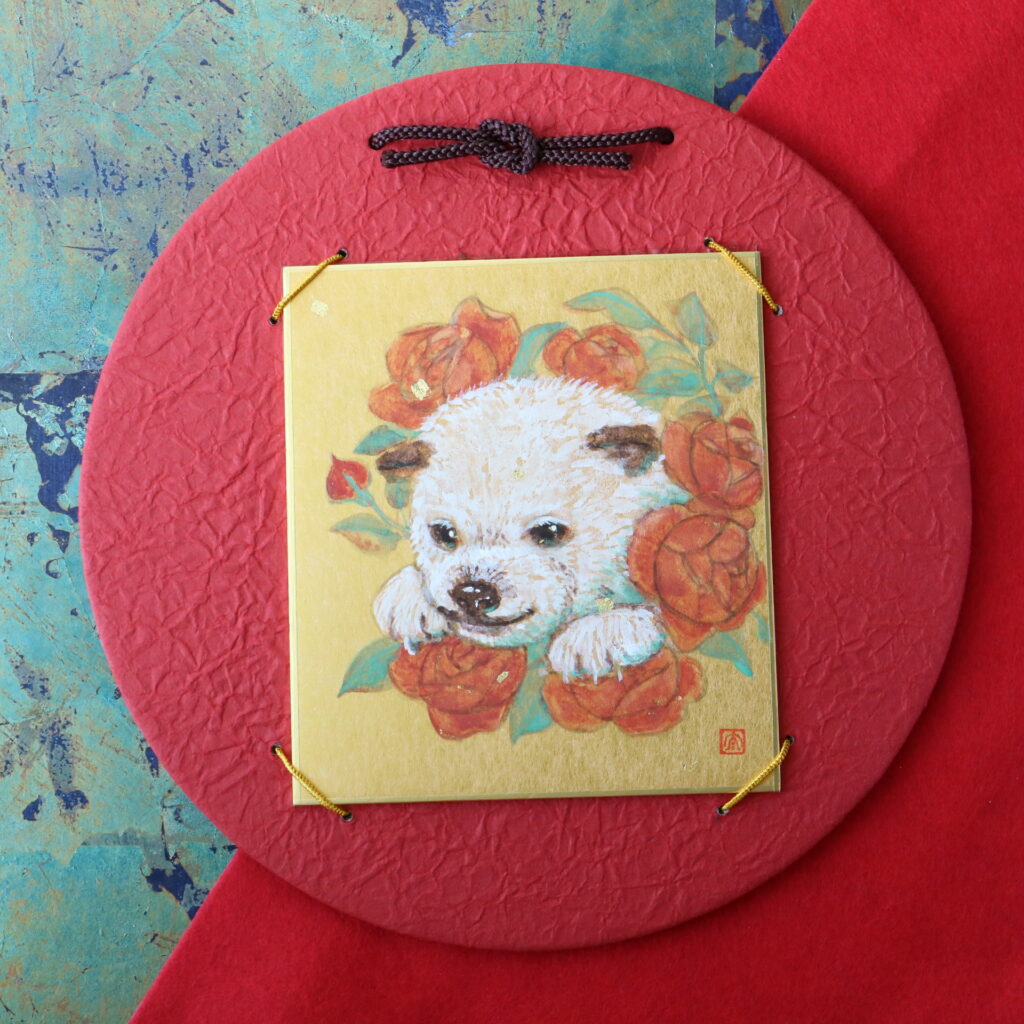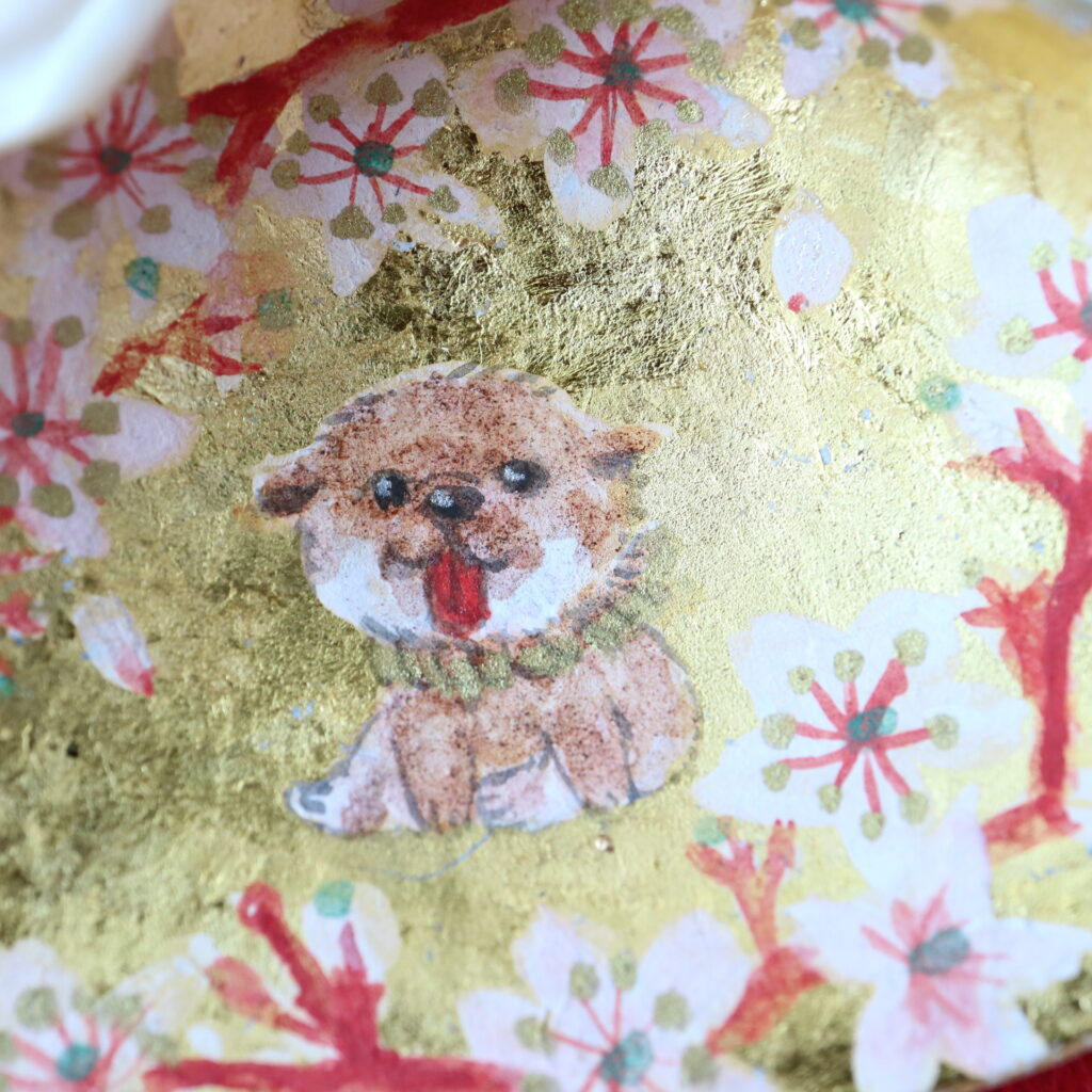 子どもから大人に成長し、ずっとあなたの心を癒し、守ってくれるお守り柴のお姿を桜と共に描きました。