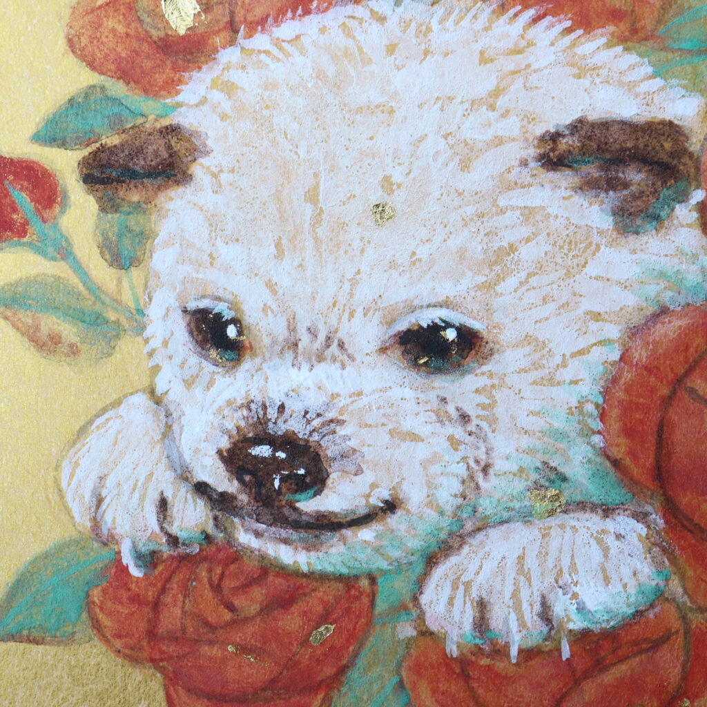 こちらは2024年制作の作品。春らしく気持ちよさそうにまあるく眠る柴さま。